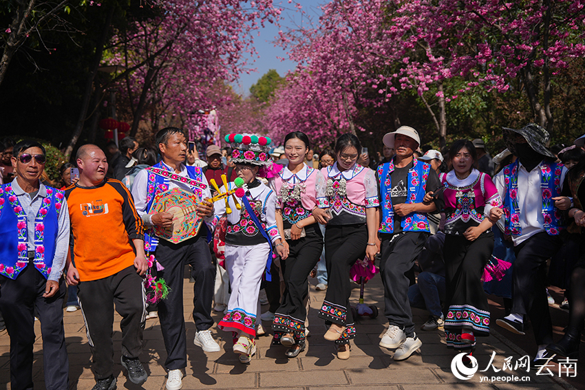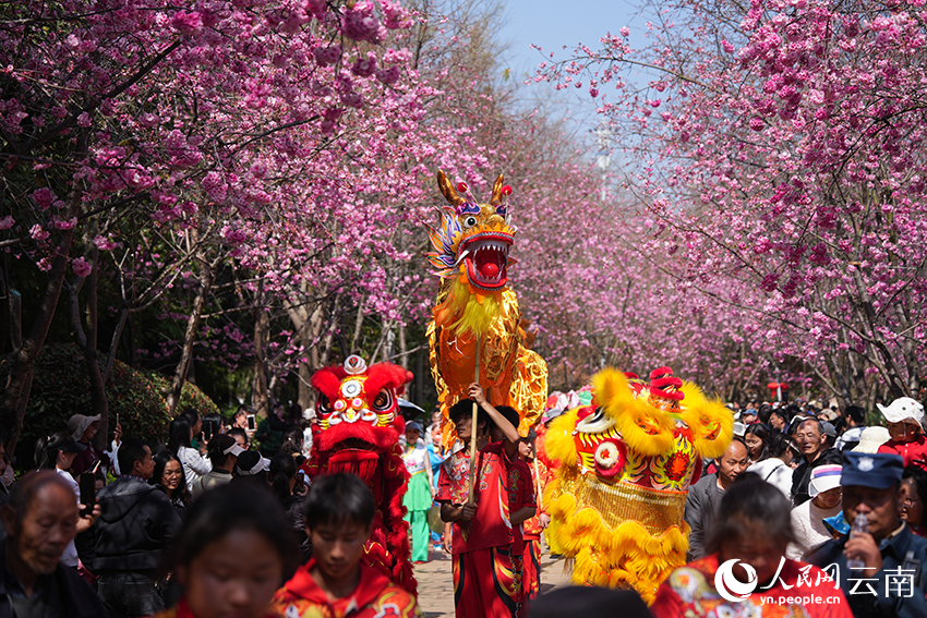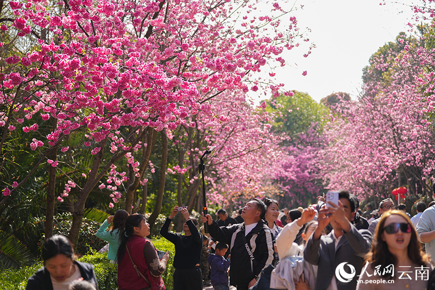 人民網(wǎng)昆明3月2日電 (記者李發(fā)興)近日,昆明市呈貢區(qū)洛龍公園內(nèi)的櫻花競(jìng)相綻放,吸引眾多市民和游客前來(lái)踏青賞花、打卡拍照,盡享春日美好。