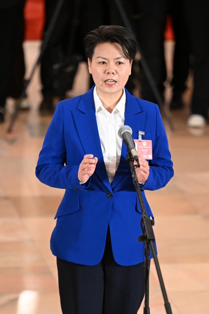 3月11日,全國(guó)政協(xié)十四屆四次會(huì)議第三場(chǎng)“委員通道”集體采訪活動(dòng)在北京人民大會(huì)堂舉行。這是全國(guó)政協(xié)委員程玉珍接受媒體采訪。