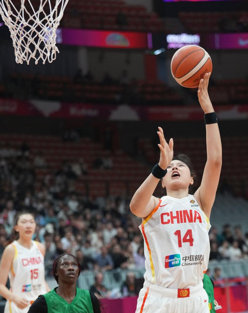 達(dá)布幫助馬里隊(duì)以5:0開局。韓旭跳投為中國(guó)隊(duì)打破僵局后,又在馬里隊(duì)的猛烈攻勢(shì)中獨(dú)得7分,將比分追至9:12。隨后,李月汝、楊舒予連續(xù)得分,幫助中國(guó)隊(duì)以15:14實(shí)現(xiàn)反超。本節(jié)末段登場(chǎng)的“小巨人”張子宇壓哨進(jìn)球,以20:20追平比分。次節(jié),中國(guó)隊(duì)一度打出一波9:0的小高潮,以35:29半場(chǎng)領(lǐng)先。